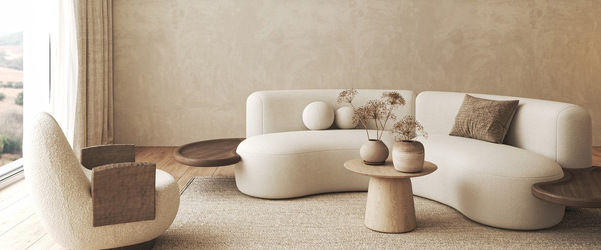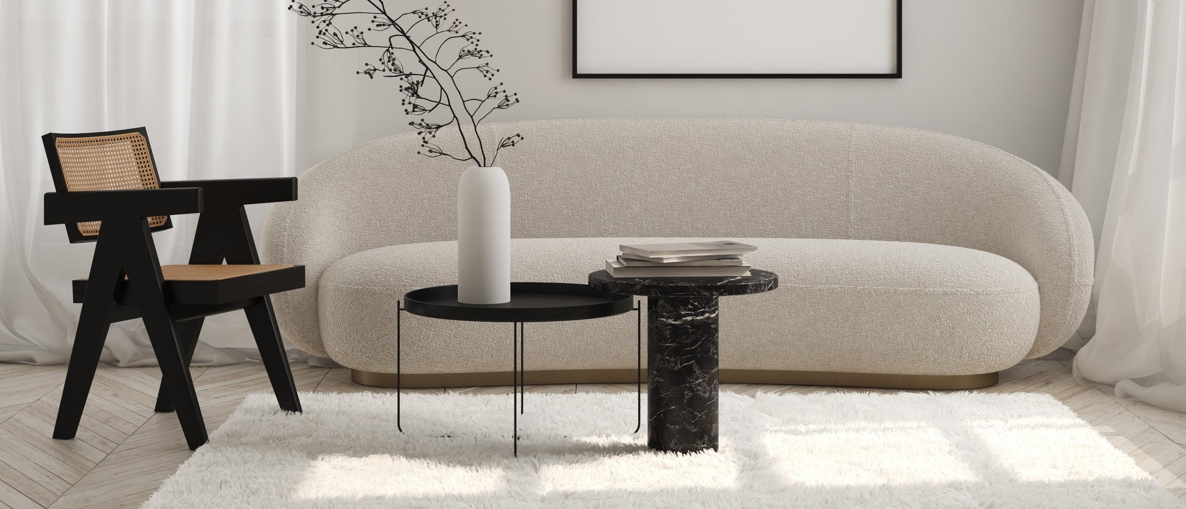 Perfect for cozy spaces, this boucle sofa brings conversations to a more intimate level with its rounded outline.