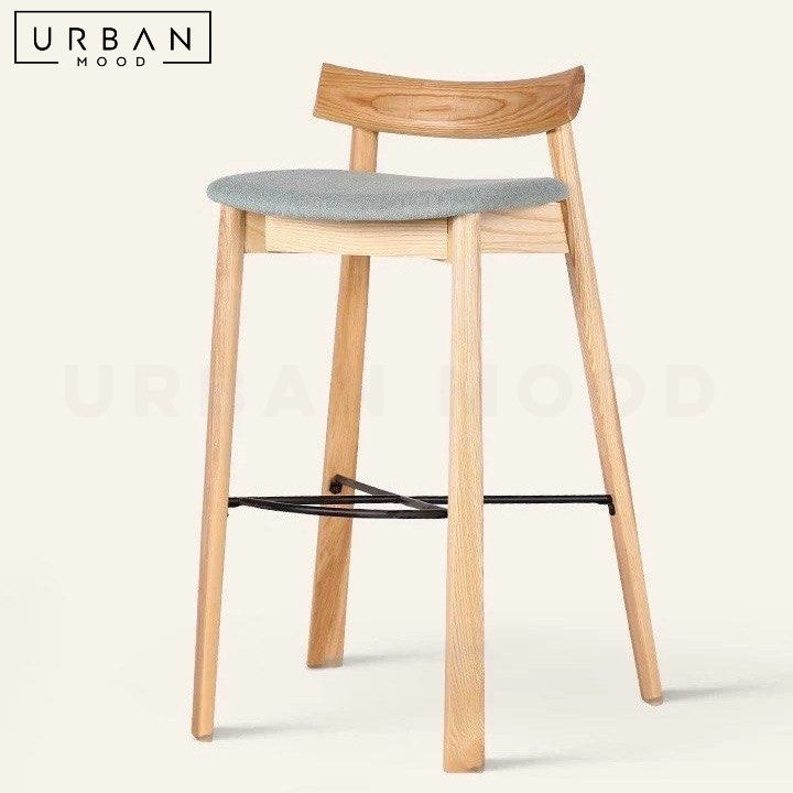 Constructed from oak wood, our DANIELA island chair features a luxurious leather cushion, and integrates well in modern, Scandinavian, and Japandi spaces with its outstanding design. A low-slung backrest provides back support, while its high-quality materials ensure durability. Complete the Scandi look with our GRAMA bar table.