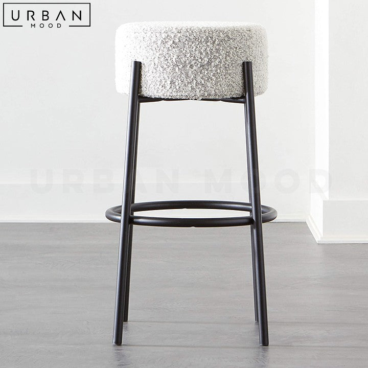 Explore the contemporary allure of our ROBYN bar stool, fashioned from durable metal and a thickly padded seat wrapped in boucle fabric. Designed with a rounded silhouette, it adds a touch of modern sophistication to any bar or kitchen counter. The sturdy construction ensures stability and comfort, while its versatile design effortlessly complements various decor styles. Whether for casual dining or entertaining guests, this island chair offers both style and functionality. Redefine your seating arrangements with this chic and practical addition to your space.