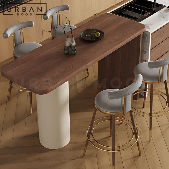 Designed for modern living, our GLENNA bar table showcases warm wood tones to suit rustic, Japandi, and earthy interiors. Made from durable E1 engineered wood and finished with a rich walnut veneer, it offers both style and strength. Its compact shape fits well in kitchens, dining areas, or entertainment spaces.