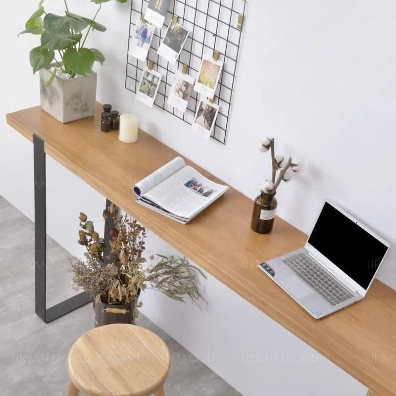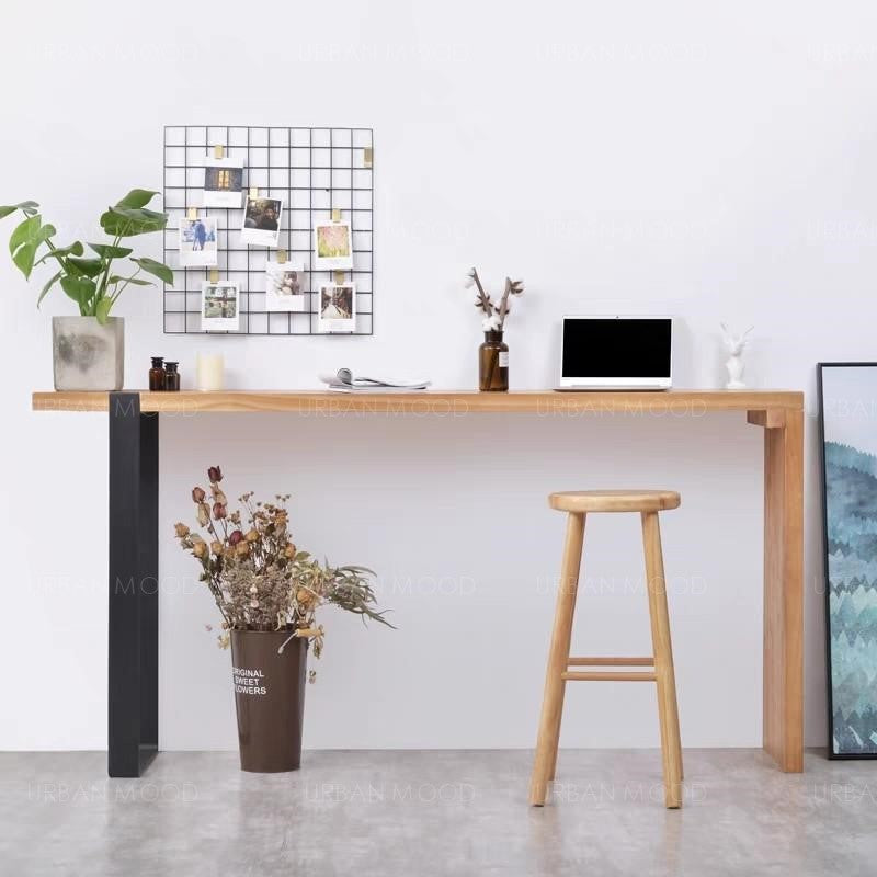 Sleek, chic and contemporary, the simplicity of this wooden bar top contrasts with an open wireframe and harmonizes with any modern interior and furnishing.