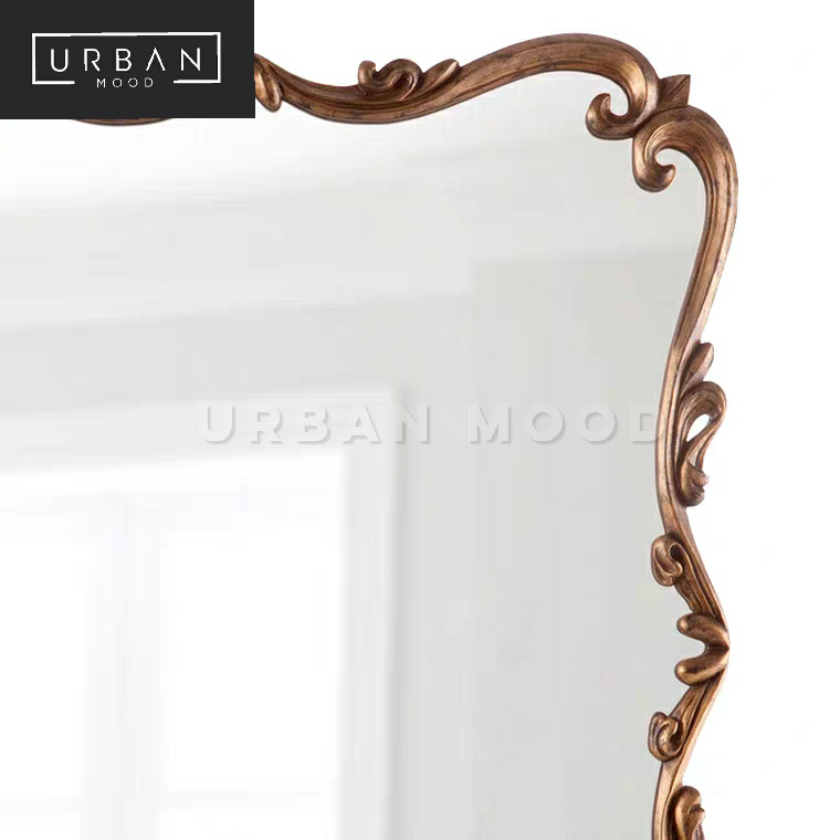 Encased in a baroque-style brass frame, this freestanding or wall-mounted mirror will enhance your foyer or vanity table with details originating back to the 17th century. This oversized mirror is ideal as a statement piece classic, eclectic, or Victorian settings.