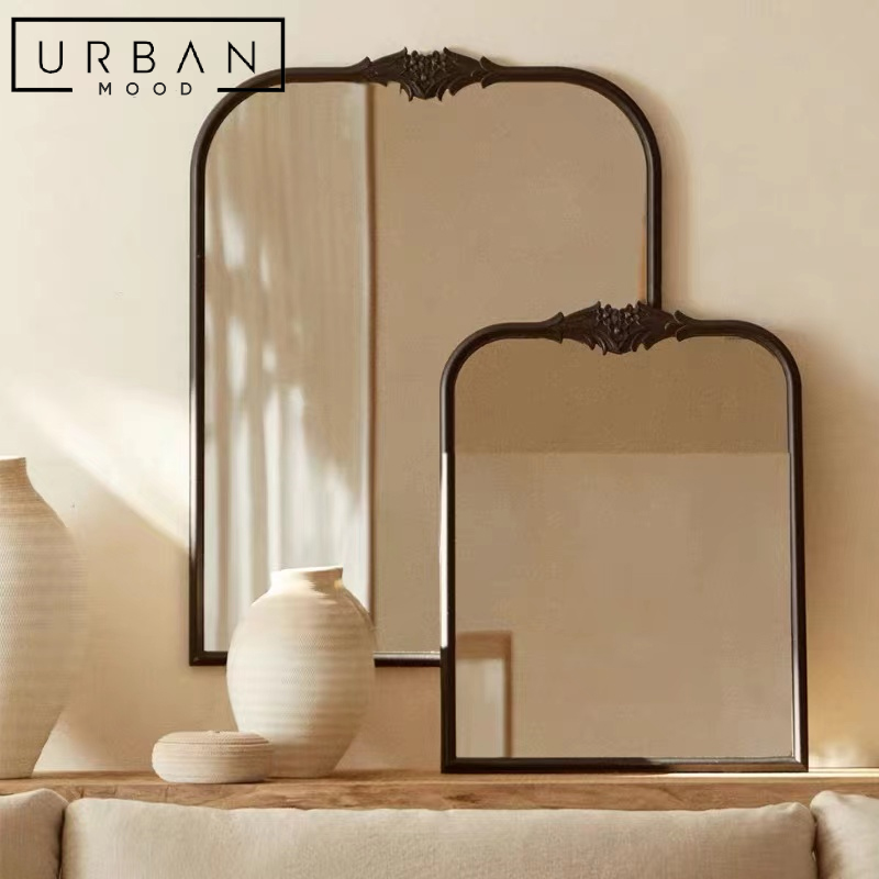 Perfect as a vanity or bathroom mirror, our EUGENIE wall mirror draws heavy inspiration from Victorian and Baroque furniture styles with its intricate yet understated floral emblem. Dress up your favourite corner of the room with this exquisite accent mirror, and draw admiration from your guests.