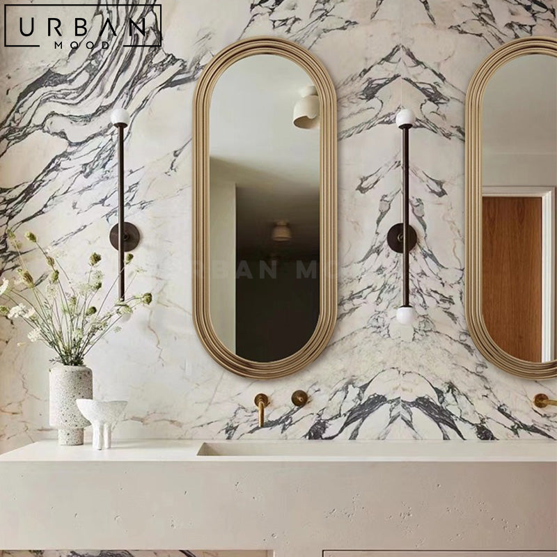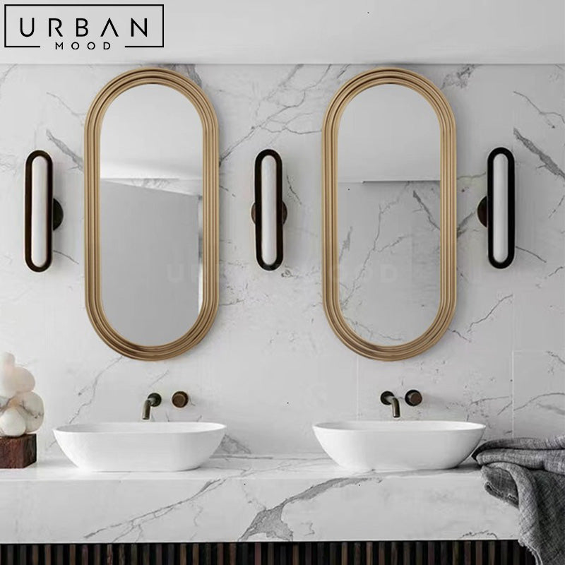 Encased in a stunning matte gold frame, our INDI wall mirror is a statement piece featuring an oval silhouette. Its classic design makes it a versatile addition as a bathroom mirror or an accent mirror in your hallway, living room, bedroom, or office. Its shape and premium material add a touch of classic charm into your home and makes it a focal point in any room. This mirror will reflect your style and enlarge your space in any modern, eclectic, or Victorian interior settings.