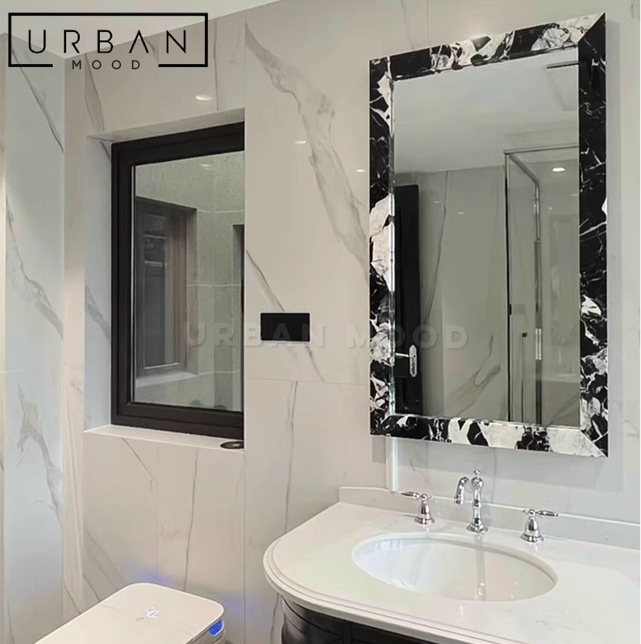 Immerse in Hollywood glamour with our MOSCAT marble wall mirror, crafted from genuine marble for a luxurious touch. Perfect as a bathroom, vanity or hallway mirror, the natural grains of the marble will add a touch of Victorian sophistication to any living space.