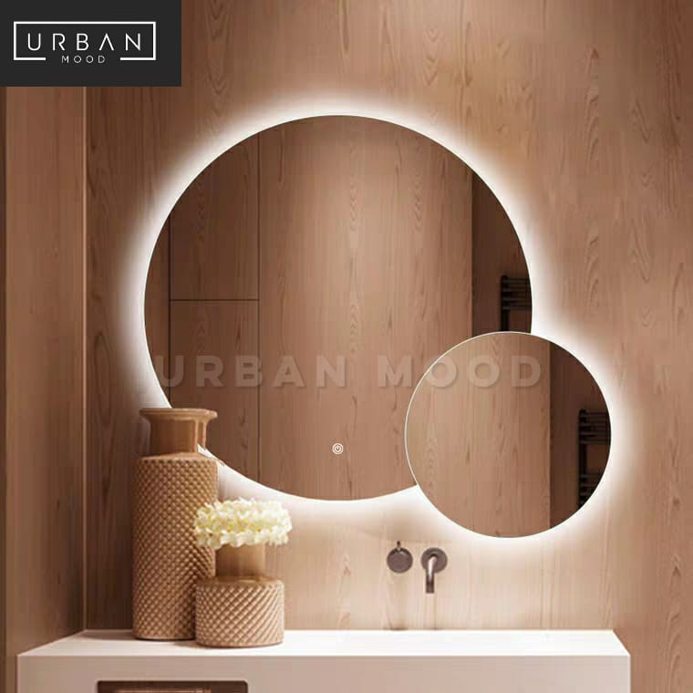 A beautiful combination of art and function, our Spot wall mirror features a pair of round frameless LED mirrors that add a modern accent to any space. Crafted with an anti-fog and shatterproof surface, enjoy soft backlight in your choice of warm, cool light or both, and activate the light with just a touch of the mirror. This design adds a touch of grandiosity and class to your walk in wardrobe, vanity table, or bathroom.