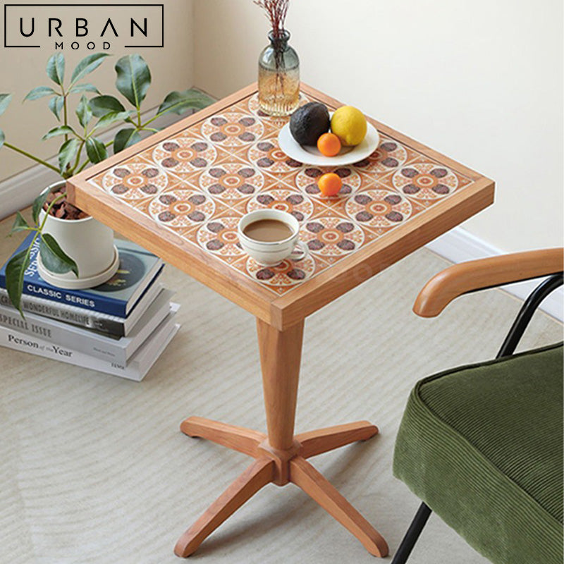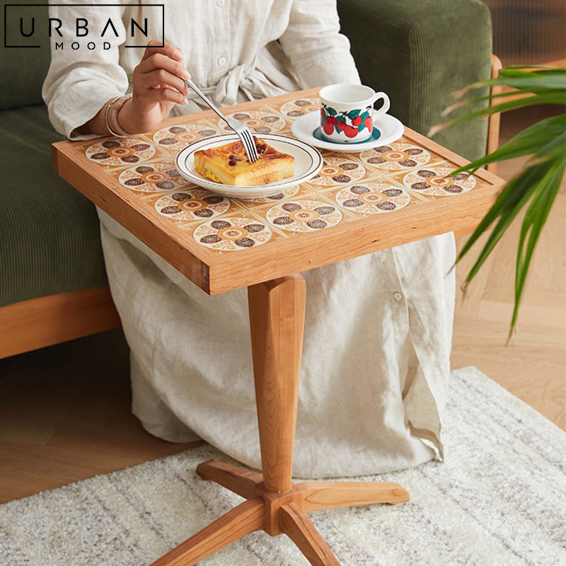 Designed for both style and versatility, our ANAS side table is crafted from durable pine wood. Featuring a beautiful stamped table surface with an intricate pattern that sets this unique design apart, this dual-purpose table makes it perfect for home and office settings, whether it is a side table in your rustic living room or a functional end table in your vintage bedroom.