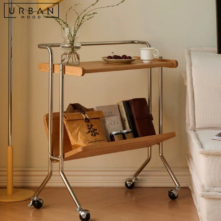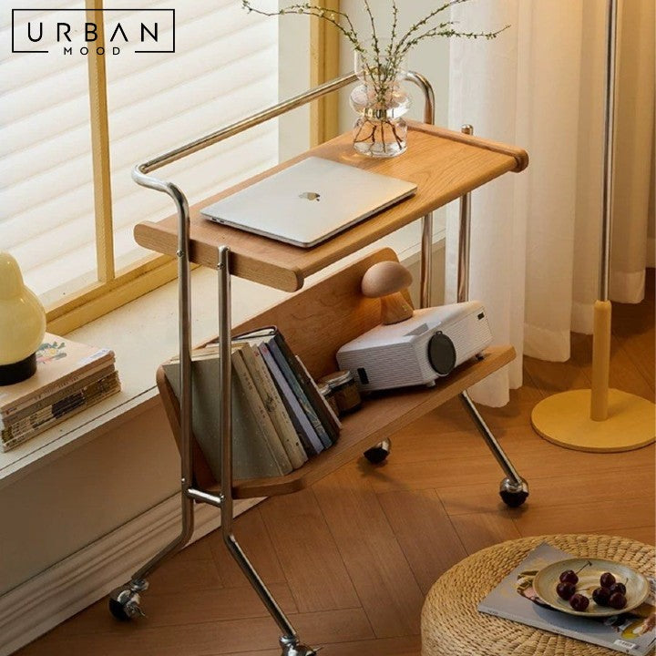 Introducing the ANGERER Solid Wood Side Table with Wheels, a striking fusion of style and functionality. Crafted from premium solid cherry, walnut, or ash wood, this side table seamlessly combines natural beauty with durability. The stainless steel accents add a touch of modern elegance, while the practical wheels allow for effortless mobility and versatility.