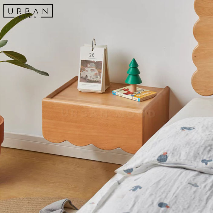 Elevate your living room or bedroom with our CORNISH night stand, featuring a spacious table top and roomy drawer fully crafted from pine wood in a matte golden oak finish. Designed to resemble a traditional biscuit, this adorable side table will add a touch of playfulness to any modern, Japandi, or Scandinavian bedrooms. The drawer door opens to reveal ample storage space for your nightly essentials such as night reads, spectacles, and lotions. Complete the rustic or Japandi look with our MUSH table lamp.