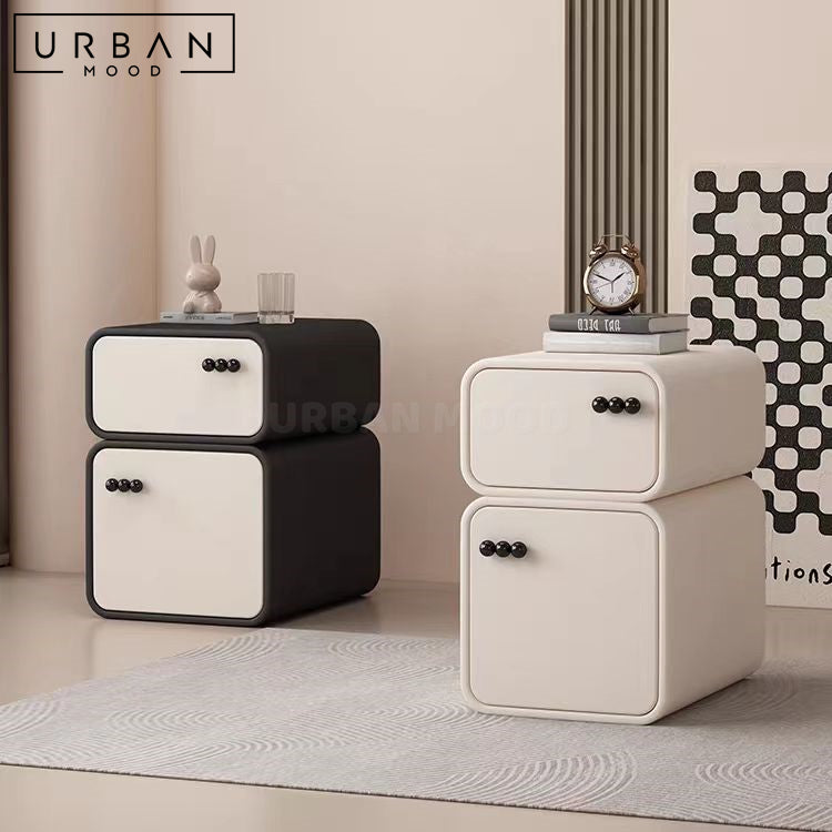 Add a playful accent to your bedroom with our EPOCH narrow bedside table, designed with compact spaces in mind. Featuring rounded corners and edges, this little number is available in black or white, with both options adorned with striking black knobs for a striking contrast. The functionality shines through with two deep and spacious drawers, providing ample storage for your essentials. Crafted from E1 high-density fiberboard and finished in a smooth matte finish, this side table will complement any modern, minimalist, or hygge living space.