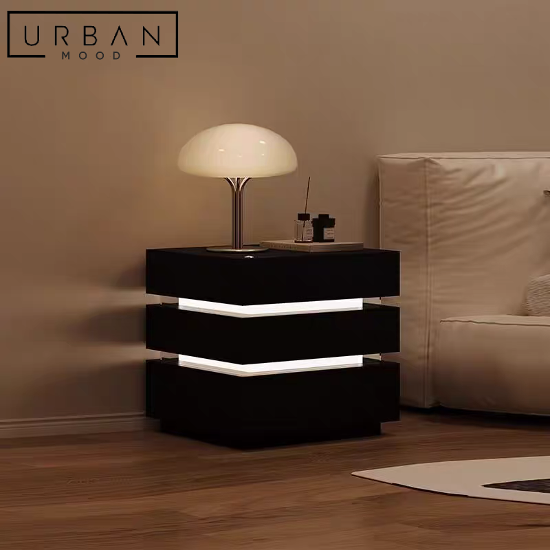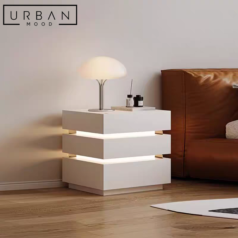 Crafted from high-quality manufactured wood, the GLORIS side table comes with LED backlight which doubles up as a table lamp, creating a cozy and warm atmosphere. This minimalist design makes it a versatile addition to any modern or monochromatic bedroom or home office. Choose between 2 or 3 convenient drawers for your bedside essentials.