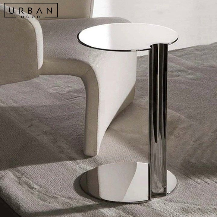 Crafted from stainless steel in a chrome finish, our HEIDI end table makes a striking addition to any modern or contemporary living space. Its sleek design and premium materials ensures lasting durability, while its minimalist aesthetic brings a touch of sophistication to any living or lounge room. Its reflective surface helps illuminate your space with a modern sheen.