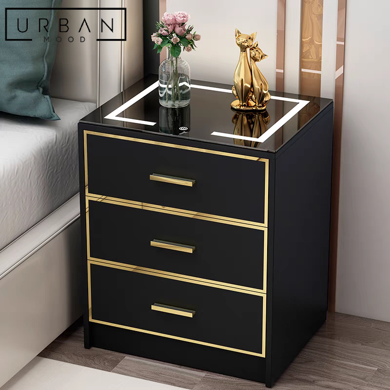 Perfect for spatially challenged spaces, our HELIO side table features an in-built LED light border on the 3C tempered glass table surface so you can go without a bulky lamp. Switch between 3 light temperatures (cool, daylight and warm) to create the ambience you want for your space. Wrapped in glossy laminate, this design will add a classic or victorian accent to your modern living room or bedroom.