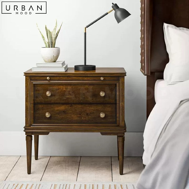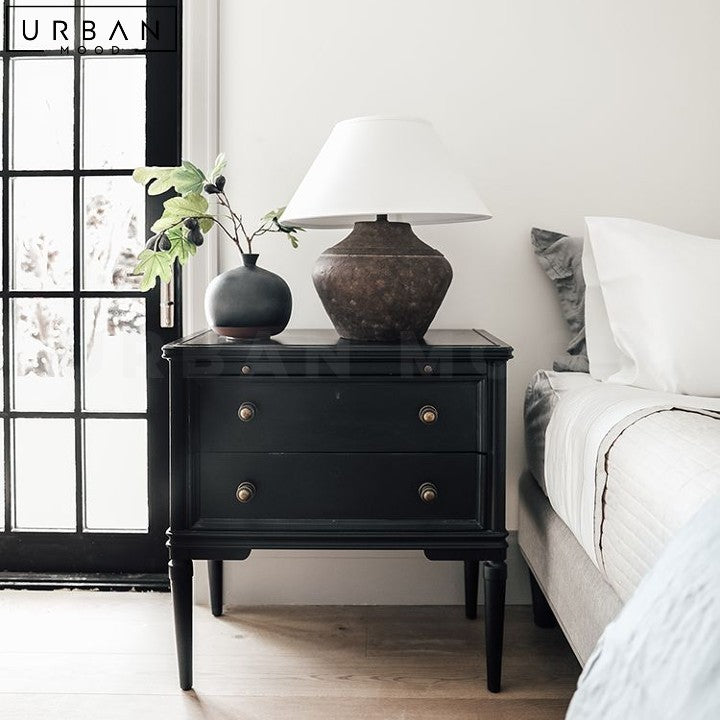 Enhance your bedroom with our HOLDON nightstand, exuding classic charm and French-inspired elegance. Crafted from premium wood, this bedside table boasts exquisite craftsmanship and timeless appeal. Its intricate details and graceful design add a touch of sophistication to any bedroom decor. With ample storage space and a versatile surface, this side table adds understated beauty to your classic or Edwardian bedroom.