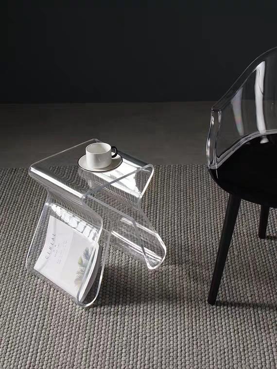 The Klip side table is a creative take on form vs function, with its legs designed to hold magazines and books for your guests. A unique and eye catching design is versatile in its role as a stool or side table, in the living or bedroom, and commercial lounge spaces. Complete the look with acrylic chairs.