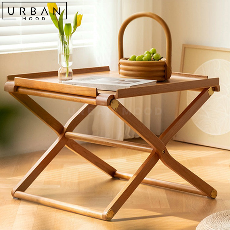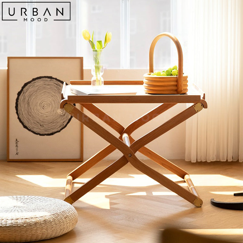 Display your favourite plants and afternoon reads on out handy LUDWIG side table. Featuring collapsible legs, this side table can be easily stowed away when not in use, or collapsed into a serving tray for social occasions. Its warm oak finish adds a touch of nature to any modern, rustic, Japandi, or Scandinavian living room or lounge room. Transform your living space into a cozy reading or breakfast nook with this versatile table.