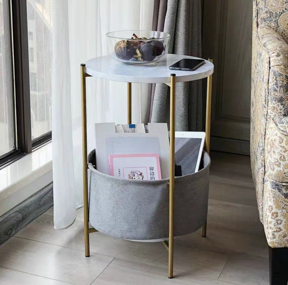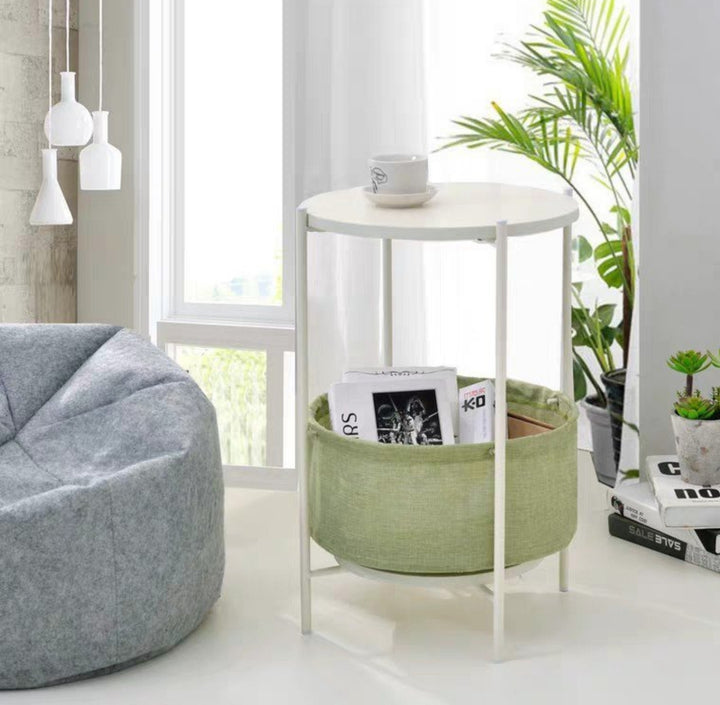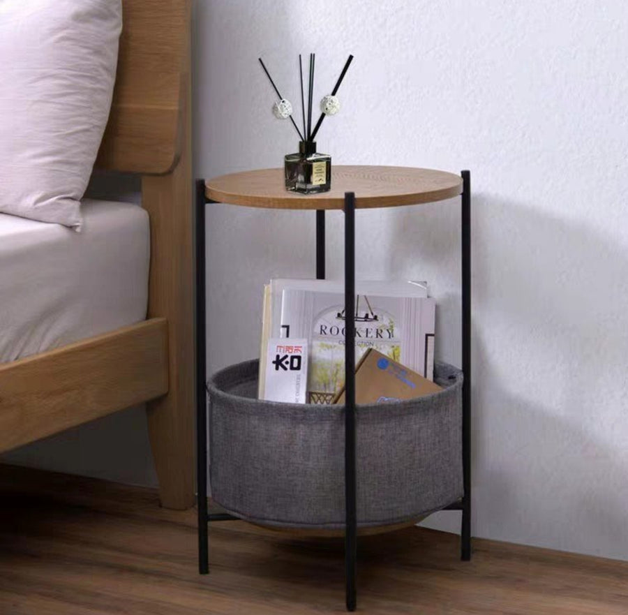 A beautiful rounded fabric side table that has a softness to it, in addition to a kid-friendly rounded table top and basket for holding your media accessories and night reads. Convert it into a cradle or bed for your beloved pet! Works in more than one spot in your modern or scandinavian home with its neutral but multifunctional design - as a side table, bedside table, or even the kitchen.