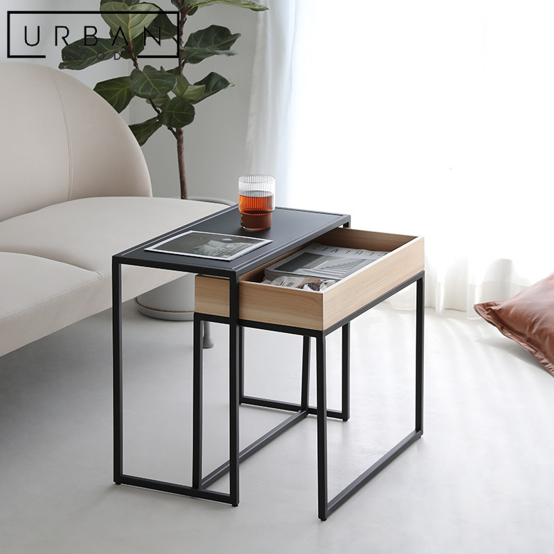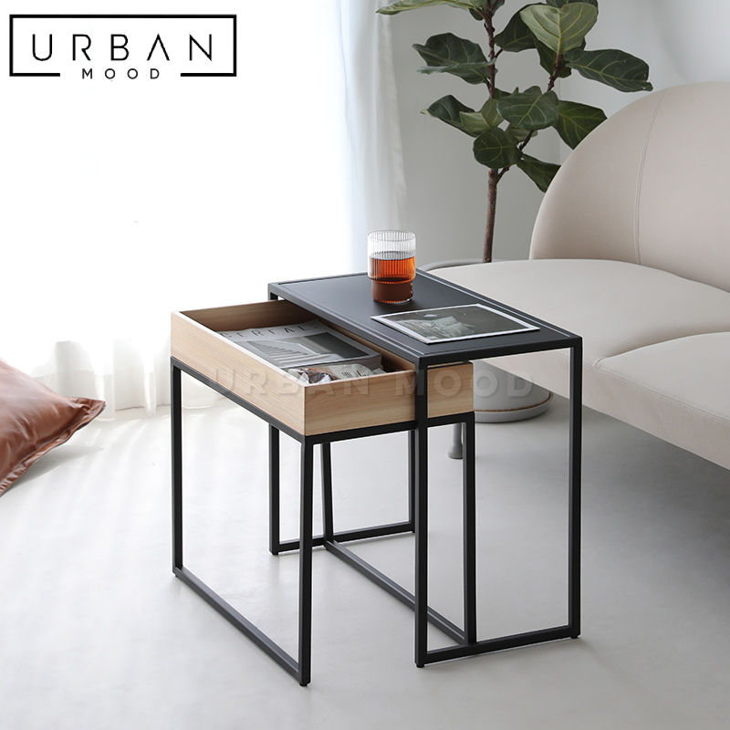 Sleek in profile, our RICARDO nesting side tables can be pulled apart for separate use or kept together compactly. The lower table features a recessed tray for your magazines and TV controllers, while the taller table serves as a serving tray to hold your glassware and movie night popcorn. Constructed from pine wood and powdercoated metal, this nifty side table is versatile in style and suits modern, industrial, or minimalist living rooms or lounge rooms.