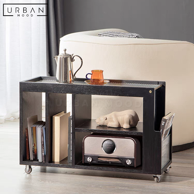 A versatile side table boasting multiple shelves for all your essentials, our ROGET side table is crafted from durable pine wood and features an acrylic table surface that adds a touch of modern style. The 360-degree swivel wheels provide effortless mobility, allowing it to be placed in any room of your choice – from your cozy reading nook to your bustling home office. Its matte black finish adds a touch of elegance to any minimalist, contemporary, or noir interior themes.