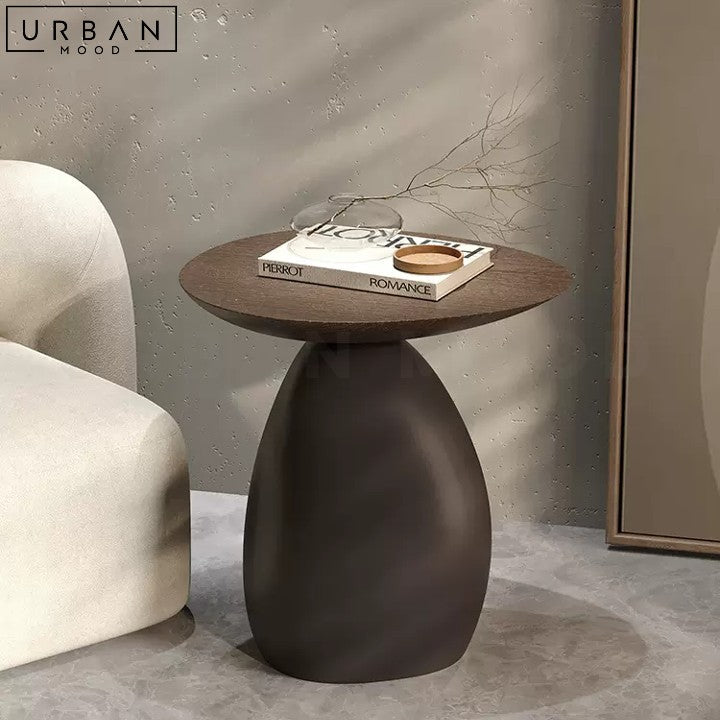 With its organic pebble shape, our VASEN side table exudes wabi sabi style. The matte black base provides a subtle contrast to the rich walnut table top, creating a sense of harmony and balance. The unique shape and understated color palette evoke a sense of serenity and calm, making it a perfect addition to any peaceful space. With its emphasis on imperfection and simplicity, this side table celebrates the beauty of impermanence and imperfection, adding a touch of wabi sabi elegance to any Japandi or postmodern room.