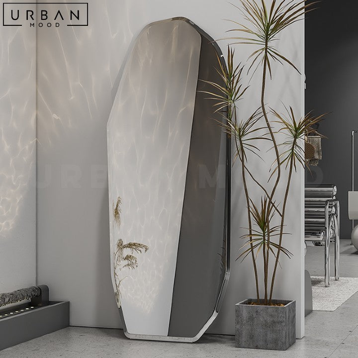 Enhance your living room, hallway, or bedroom with our LEMMING irregular mirror. Its unique shape adds a touch of modern sophistication, while the frameless design integrates well into any minimalist interior. The mirror's sleek surface provides a crisp, distortion-free reflection, making it perfect for daily routines and morning selfies. Its irregular shape adds a dash of whimsy, breaking away from traditional mirror designs. This statement piece is sure to complement your modern or contemporary decor, bringing a sense of elegance and refinement to any living space.