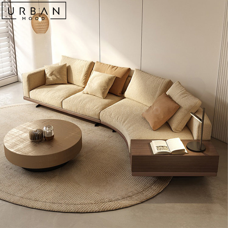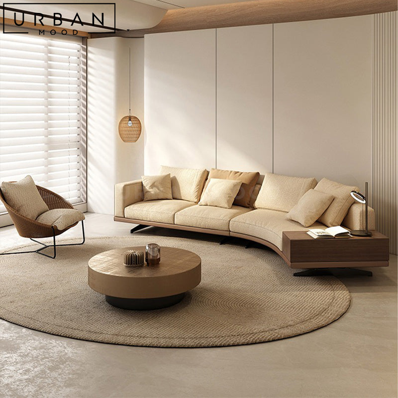 Enhance your living space with our MEANG modern fabric sofa, an impeccable fusion of wood and contemporary design. Its sleek and ultra-modern style instantly upgrades any modern or hotel-inspired interior aesthetics. With a strong pine wood internal structure, this couch is built to withstand the test of time. At one end, a side table replaces the armrest, providing convenient surface area for books and remote controllers. Whether placed in a living room or office lounge, this spacious couch offers the perfect balance of style and comfort, making it a stylish addition to any home or office.