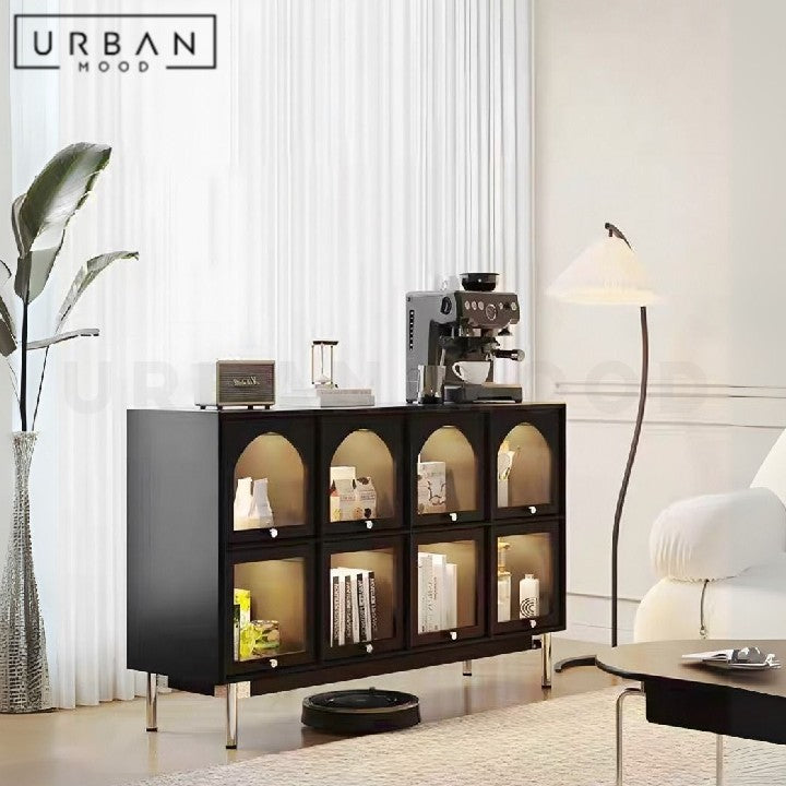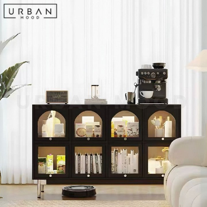 A stunning display and storage solution crafted from pine wood, our YUNG cabinet features 3C tempered glass panels for clear visibility and added safety. Stainless steel accents provide durability and a radical touch. Its rectangular shape offers ample space for showcasing collectibles, books, or decorative items. This versatile piece acts as vertical storage for compact flats and a space divider for spacious landed properties.