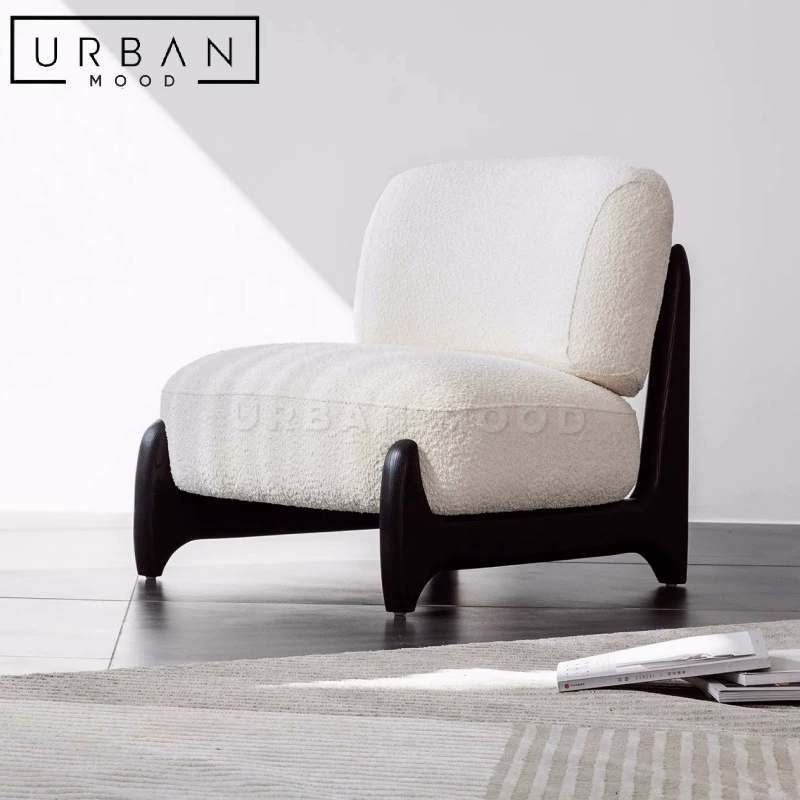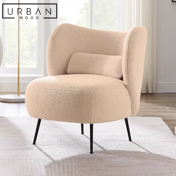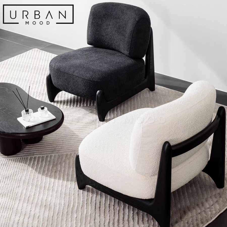 Our adorable COCO boucle leisure chair is the epitome of comfort and style. Its plush backrest and seat create a cozy haven, inviting you to unwind and relax. Crafted with a sturdy solid wood frame in a sleek black finish, this chair combines durability with sophistication. Whether you're curling up with a good book or enjoying a cup of tea, the Boucle leisure chair offers the perfect spot to indulge in leisurely moments. Add a dash of cuteness and elegance to your living room or office lounge with this charming chair that effortlessly complements any modern or hygge decor.