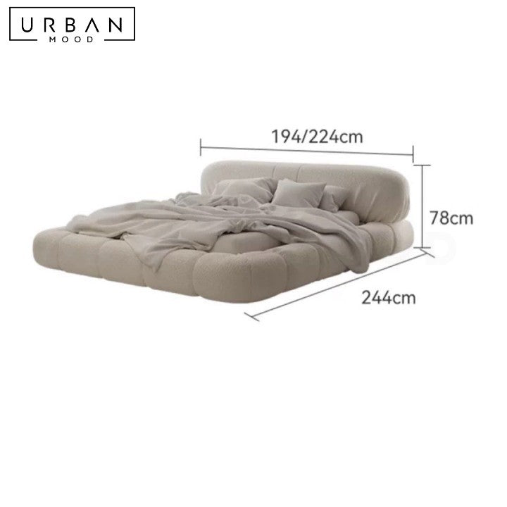 Kids and adults will love this cloud on earth wigh its whimsical outline! Wrapped in a thick border of foam cushion and upholstered in tufted boucle, it's a cozy retreat for all ages. The mid-height headboard features a soft, rounded design that evokes a sense of calm. Perfect for Japandi-inspired bedrooms, this bedframe combines comfort and style.
