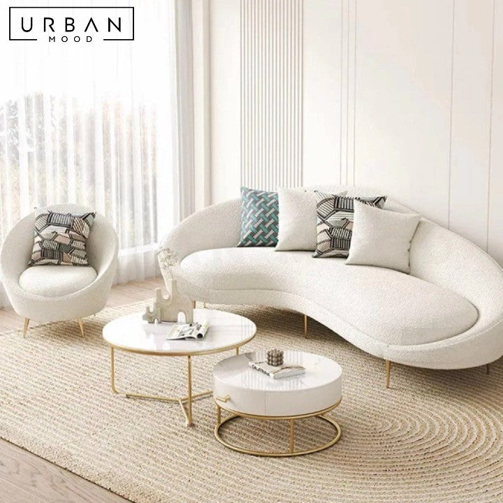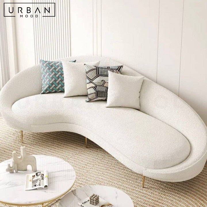 Introducing the UNGER Modern Curve Sofa, a striking piece that seamlessly blends contemporary design with luxurious comfort. Upholstered in your choice of boucle or velvet fabric, this sofa exudes modern elegance. The high-resilience foam cushions provide plush support, while the sturdy pine wood internal structure and sleek iron legs ensure lasting durability.