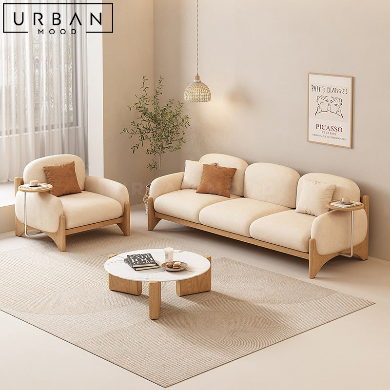 Add a dash of colour to your living space with our trendy BENMIN couch. Elevated on wooden legs in a warm oak finish, this sofa complements both studio apartments and modern homes, adding a Japandi touch to any room. Crafted for comfort and aesthetics, this sofa offers cozy relaxation with its high-density foam infill and lush fabric upholstery. Transform your modern, contemporary, or eclectic living room or office into a cozy haven, and complete the look with our ORIZON wall art.