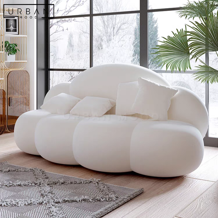 Indulge in whimsical comfort with our delightful boucle sofa, designed to capture your imagination and transform your living space. Shaped like a fluffy cloud, our BOBOIS couch adds a touch of playfulness to any room. With its low profile and very short legs, it exudes a sense of cozy relaxation, inviting you to sink in and unwind. The irresistibly cute and charming design of this sofa is sure to delight your guests and create a unique focal point in any modern, minimalist, or hygge styled space.