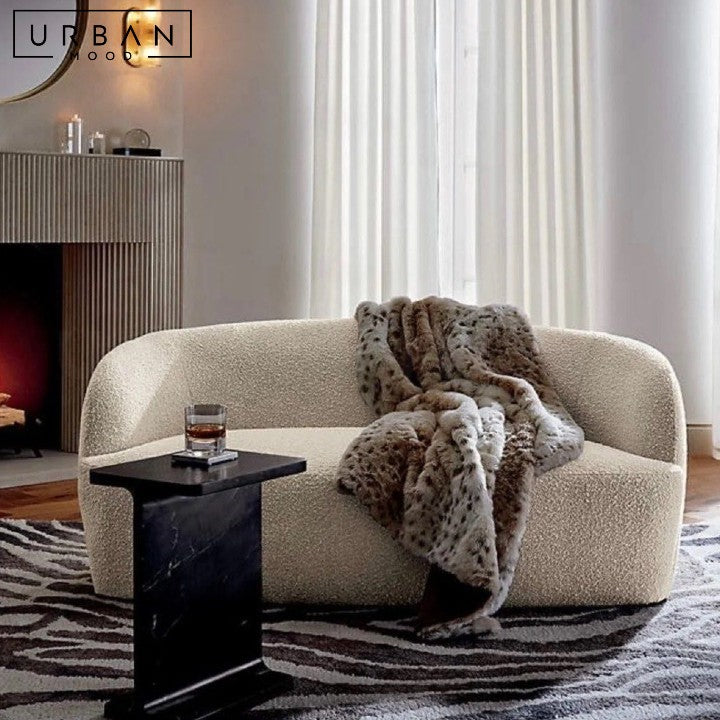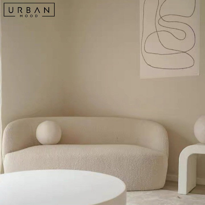 Add a touch of Wabi-Sabi whimsy to your living space with our BURL couch. Crafted with high-density foam infill and a sturdy pine wood internal structure, this sofa combines comfort and durability. The textured boucle upholstery adds depth and visual interest. Customizable to suit your unique style, choose from a range of colours to complement your Japandi, Hygge, or Muji interior.