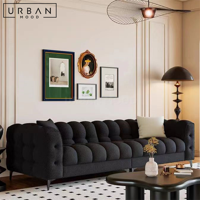 Enhance your living space with our GALEA modern boucle sofa. This sofa is meticulously crafted with a pine wood internal structure, high-density foam infill, and carbon steel legs, ensuring both durability and comfort. Its modern style seamlessly adapts to various interior settings, whether you prefer a classic, minimalist, or eclectic look. The GALEA sofa complements your placement and styles, offering a practical and chic addition to your space. Enjoy its versatility and timeless design, which adds both comfort and sophistication to your room, making it a perfect choice for creating a cozy and stylish seating area for relaxation and gatherings.