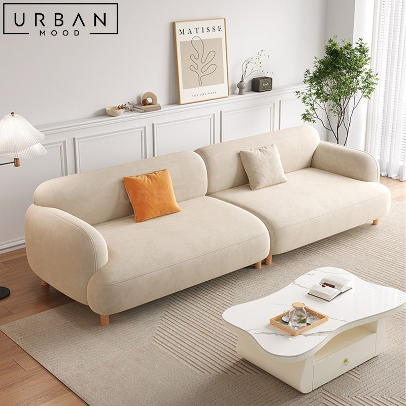 Our LCOLA sofa's clean design effortlessly fits into your room, providing both style and comfort. Crafted with a sturdy wooden frame and high-density foam infill that provides excellent ergonomic support, this couch harmoniously complements minimalist, Japandi, Wabi Sabi, and Hygge decor styles. This versatile addition to your home offers a modern aesthetic that suits various preferences.