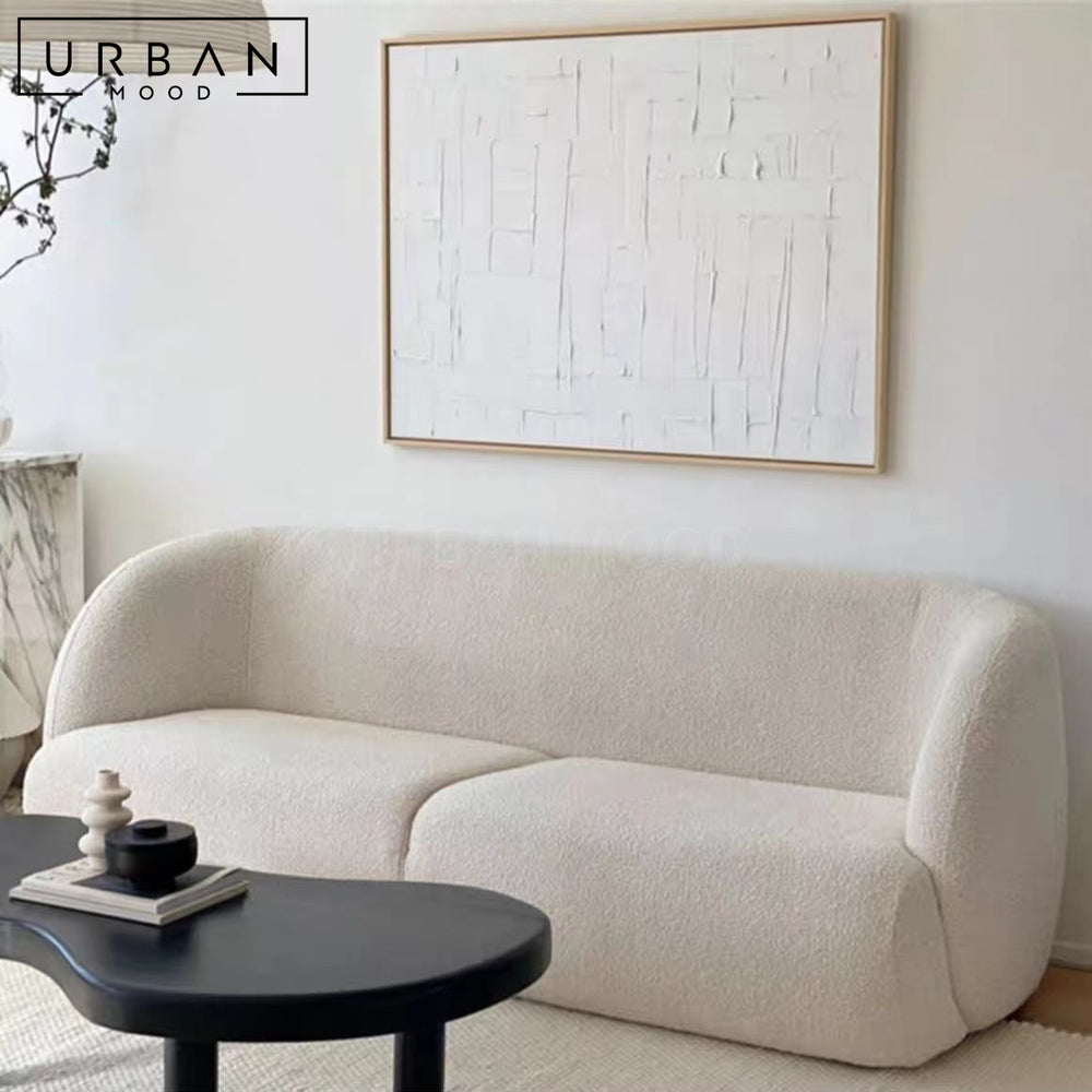 Upholstered fully in luxurious boucle fabric, our SHOANA sofa exudes both comfort and style with its curved silhouette and plush backrest and seats. The high-density foam infill ensures optimal support and plushness for a cozy seating experience. With its sleek and minimalist design, this sofa will seamlessly complement modern, Japandi, and minimalist interiors.