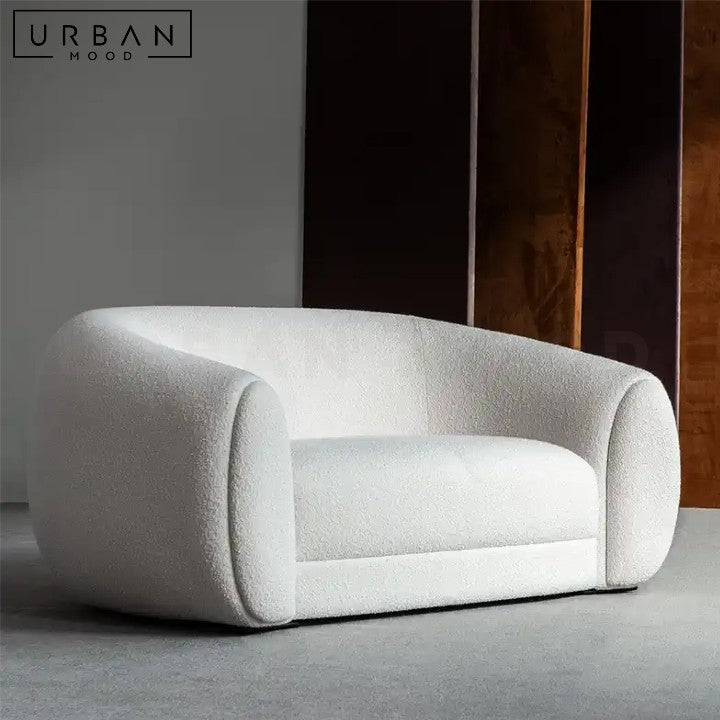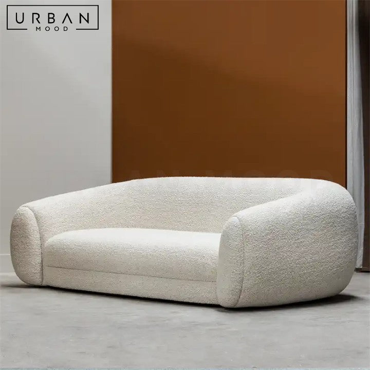 Designed to envelop you in warmth and coziness, our YEGGY couch features a wide, slightly curved backrest and high-density foam infill that ensures an unparalleled relaxation experience. Crafted with a sturdy pine wood internal structure, this sofa boasts exceptional durability. Embodying the principles of modern hygge design, this boucle sofa invites you to unwind and indulge in the simple pleasures of life. Perfect for cozying up in style.
