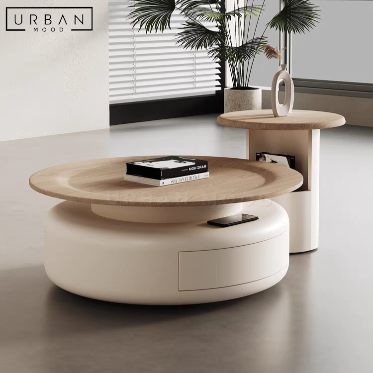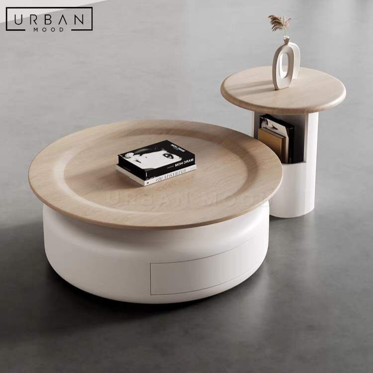 Handcrafted from durable MDF board in a matte finish, our ARK coffee table features a smooth and round table top that provides ample space for serving and displaying your favorite items, while the nesting side table offers convenient versatility. With its adorable design and contrasting off white base featuring a handy drawer for your media accessories, this coffee table adds a touch of warmth to any Japandi-inspired living room or lounge room.