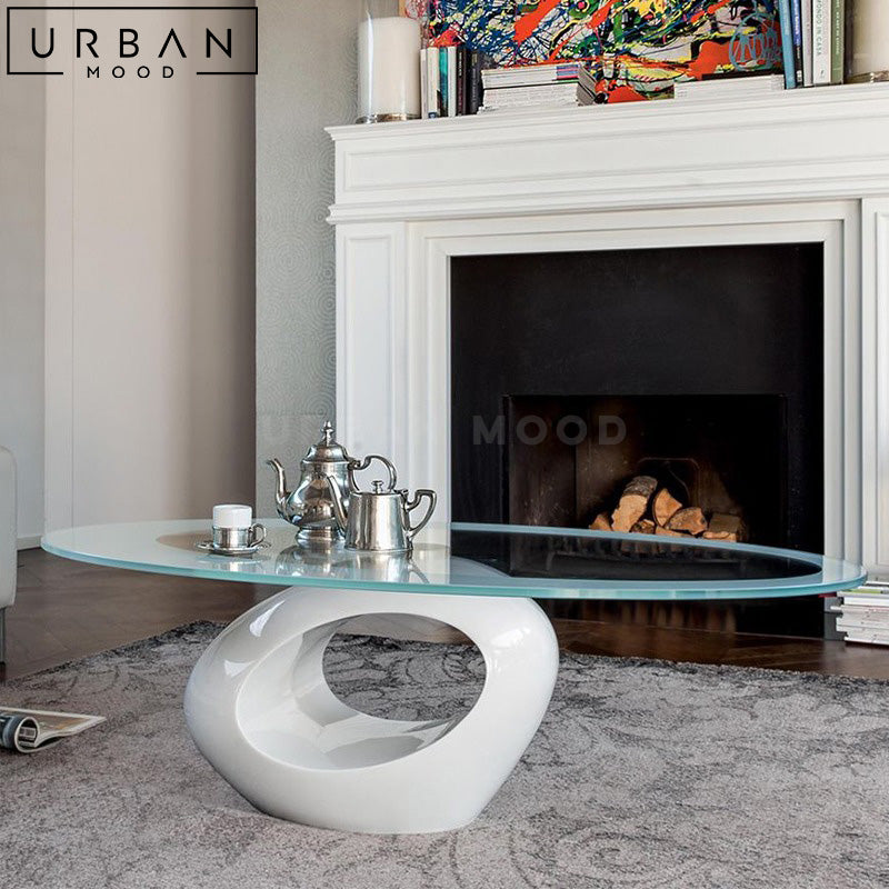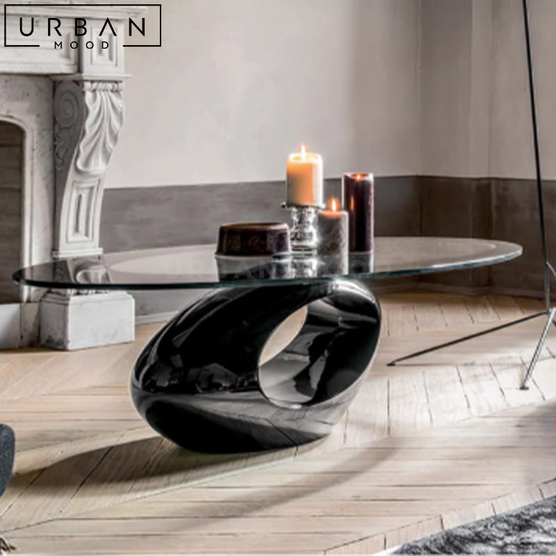 Transform your living space with our AZZO modern coffee table, a true designer piece featuring an elegant oval shape and tempered glass top, and a unique round base that adds an artistic touch to any living room or lounge room. A statement piece in a minimalist or hotel-inspired setting, this coffee table will be a conversation starter with its premium materials and timeless design. Complete the classic look with a high pile rug and our SCHULL standing lamp.