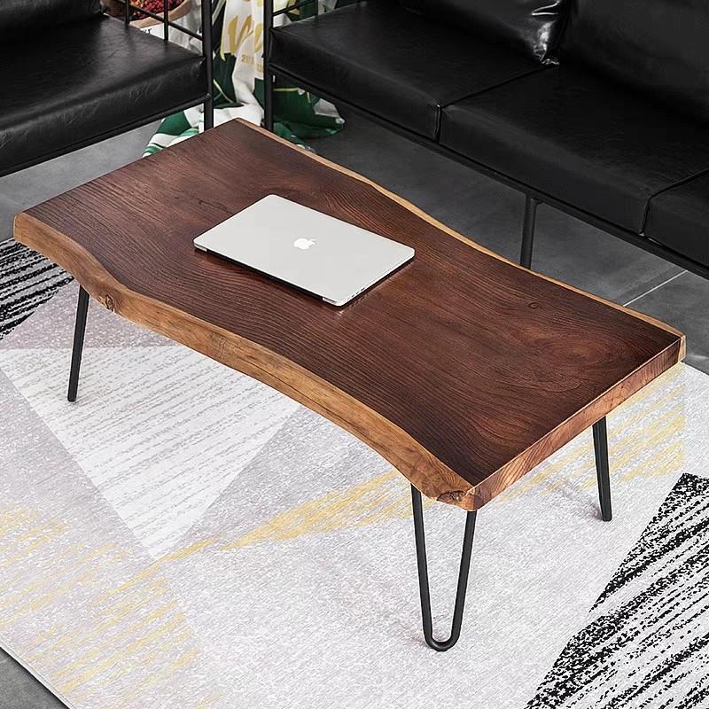 Give your living or lounge room a defining look with the Caius coffee table. The design features a single slab of suar wood with beautiful live edges, balanced on steel hairpin legs for an industrial touch. Each slab is treated, waxed and polished, and are heat, stain and waterproof.