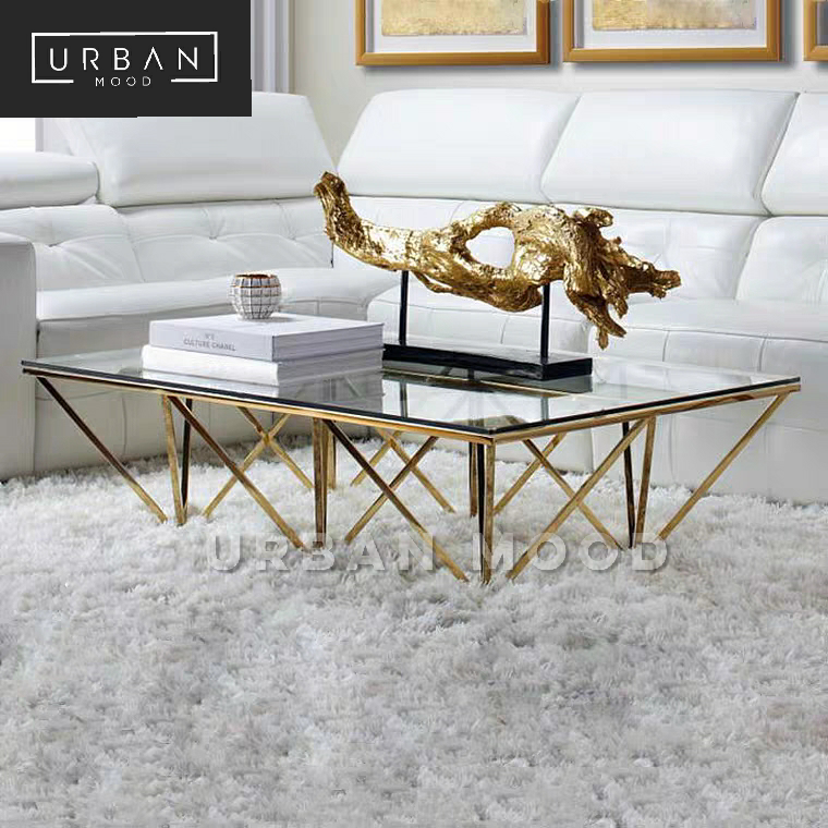 One look and you’ll fall in love with this minimalist Hollywood-esque elegance of the transparent tempered glass tabletop and slim plated iron base frame in a geometric pyramid base. This postmodern design lends a touch of Victorian luxury to contemporary settings. Complete the look with a high pile rug and Chesterfield sofa for a showroom effect.