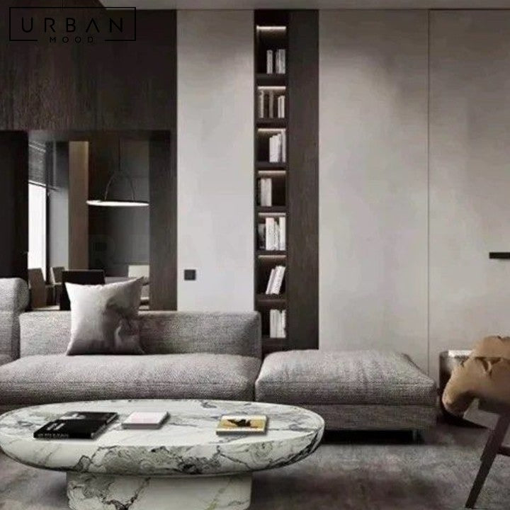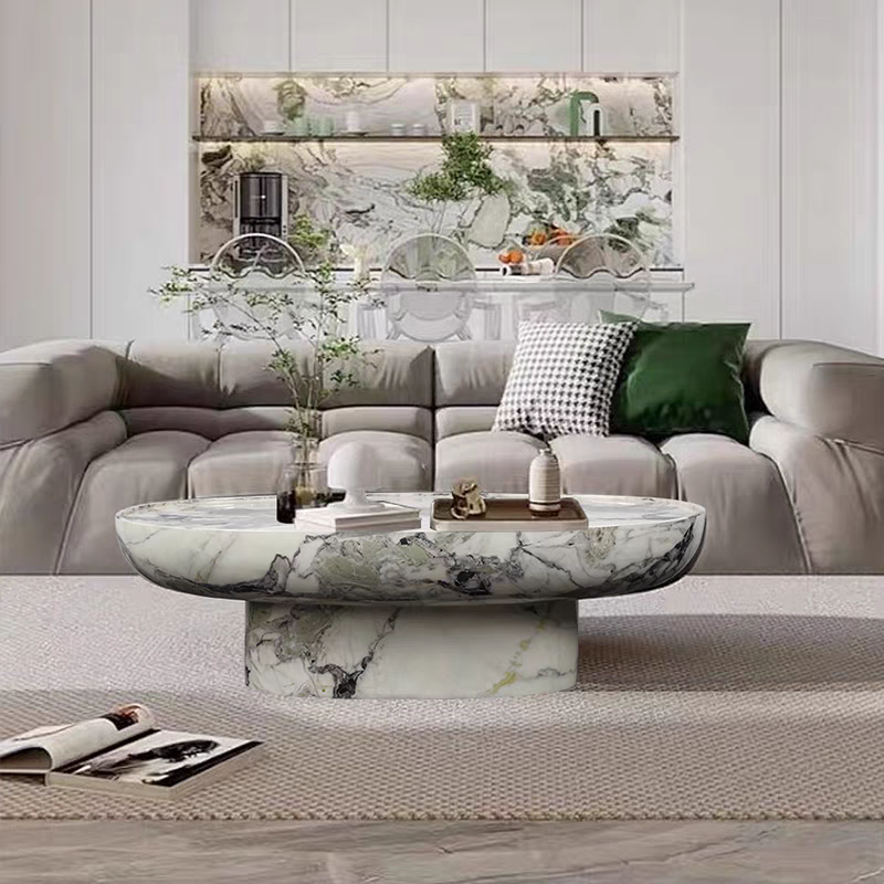 Our DRANO center table features an exquisitely crafted marble exterior set on a durable fiberglass base, adding a touch of regal opulence to any lounge room. Its elegant design and smooth finish illuminate any contemporary, classic, or Victorian living room, while ensuring safety for children and fur kids with its rounded silhouette.