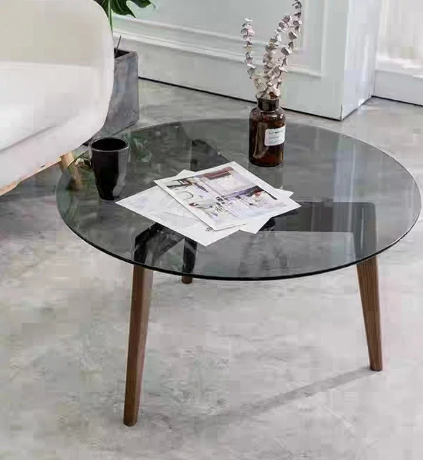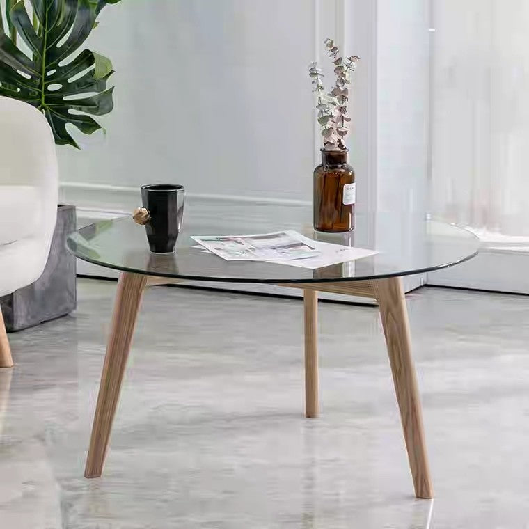 Simple and elegant in its design and construction, the Dumo showcases a large round tempered glass surface balanced on stilted wooden legs, a delicate marriage of materials and shapes. Minimalist and scandinavian lovers will appreciate the simplicity of the design.