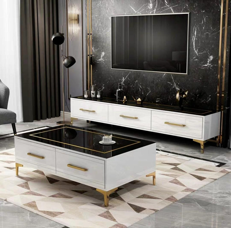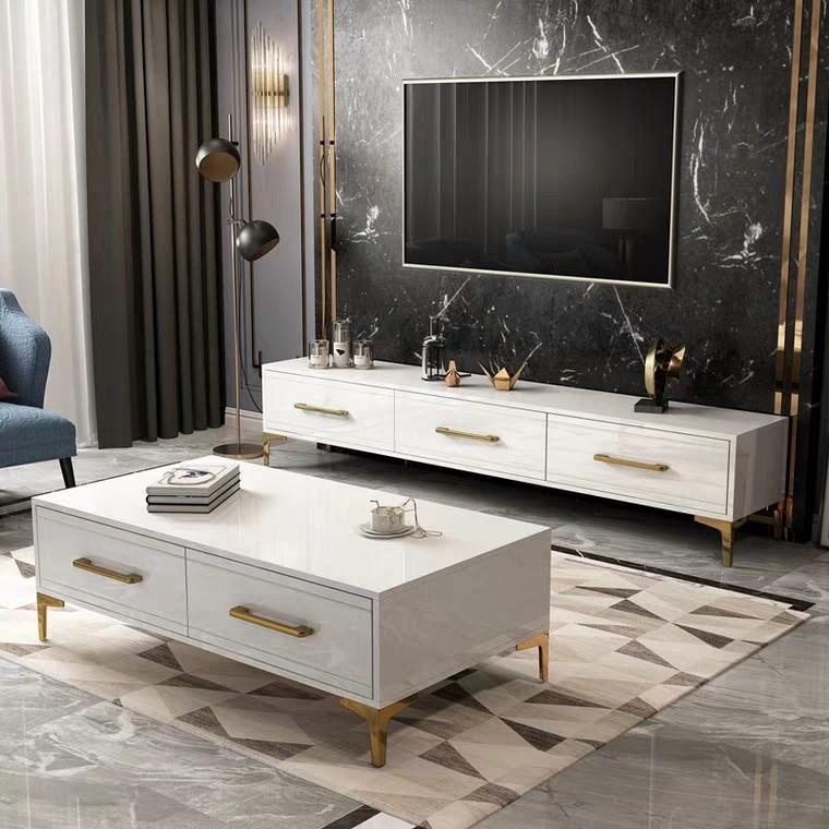 The TV console and coffee table are the centrepieces of your living room, their style sets the theme of your interior. With a modern twist on the Victorian style, this beautiful glossy white set will raise the bar for luxury in your home.