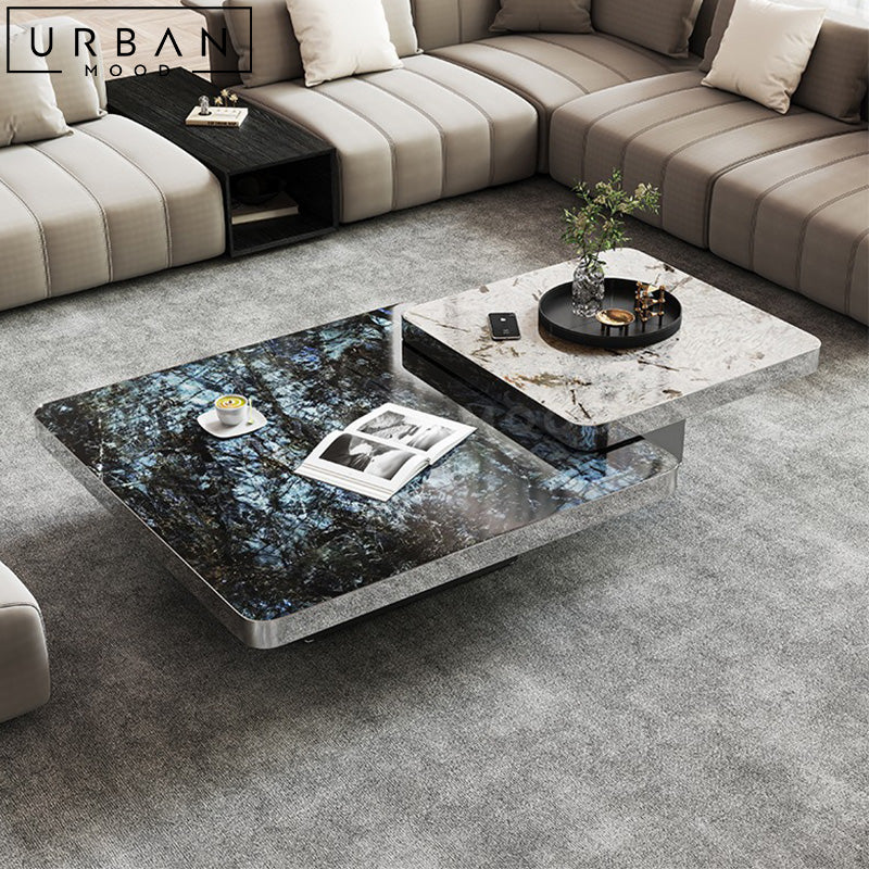 Anchor your living room or office lounge in style with our HAZEL coffee table. Featuring a perfect square top crafted from highly durable sintered stone in a high gloss finish, this low-profile centerpiece boasts a stainless steel rim and base that will last through the years. Choose from a sophisticated onyx blue or a refined emperador grey table top to complement your contemporary, Victorian, or hotel-inspired interiors. Complete the look with an accompanying taller nested table, and pull them apart for separate usage during social gatherings. This timeless design is built to last with its premium materials and careful design.