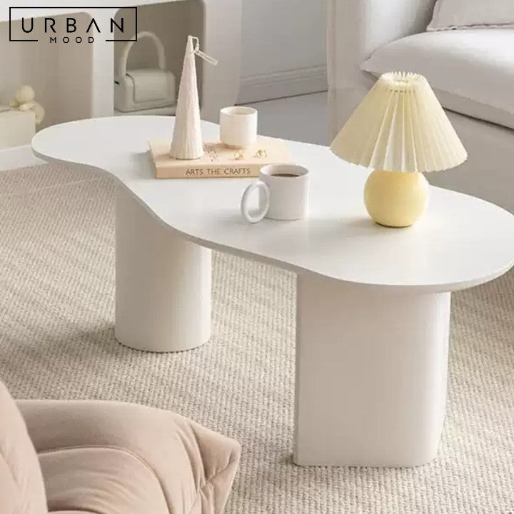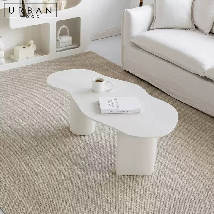 Crafted from premium pine wood, our HOBB center table is designed in an abstract cloud shape that softens the structural lines of any space. Its clean lines and milky white finish accentuates anchor furniture, complementing any modern, minimalist, or Japandi decor style.