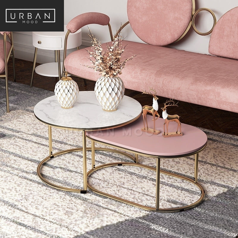 This elegant nesting coffee table is a perfect addition if you are looking for a romantic touch to your lovely home. Crafted from faux marble and a powdercoated iron frame, the shade of sweet pink adds a feminine element yet also a sense of playfulness. The structure of the table gives off a royal Victorian feel to your modern or french-inspired home which will certainly be very eye catching.