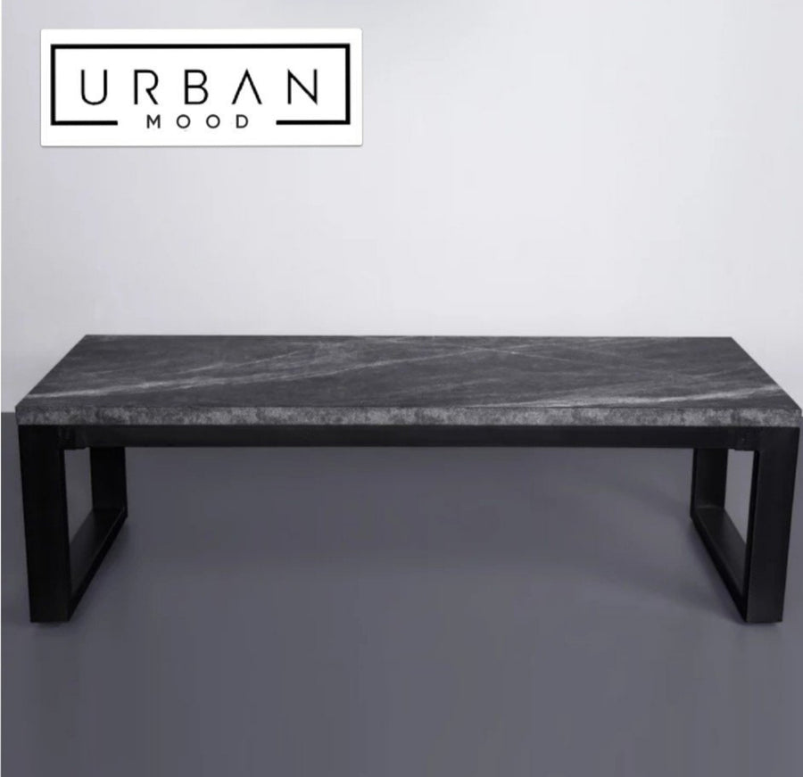 Create an instant impression with this black mica rock laminate top from Formica, a non-porous and durable material great for work stations, design studios, and dining. Textured with strong hues of grey and black, pair the table with our JAVAN coffee table and chair series to complete your modern industrial theme.