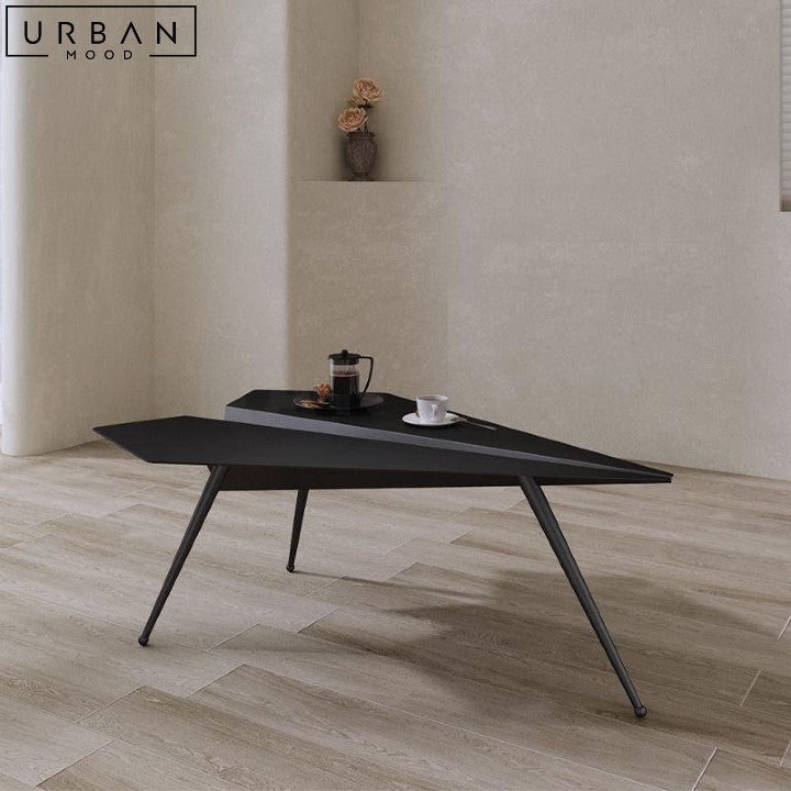 Crafted from innovative materials, this table embodies the essence of minimalism in modern design. With clean lines and a streamlined silhouette tab resembling a paper airplane, this unique work of art integrates into contemporary spaces, offering a focal point for your living area. Its versatile design and understated elegance make it the perfect addition to any modern or contemporary home.