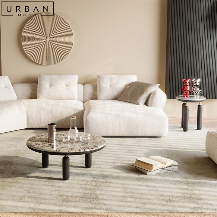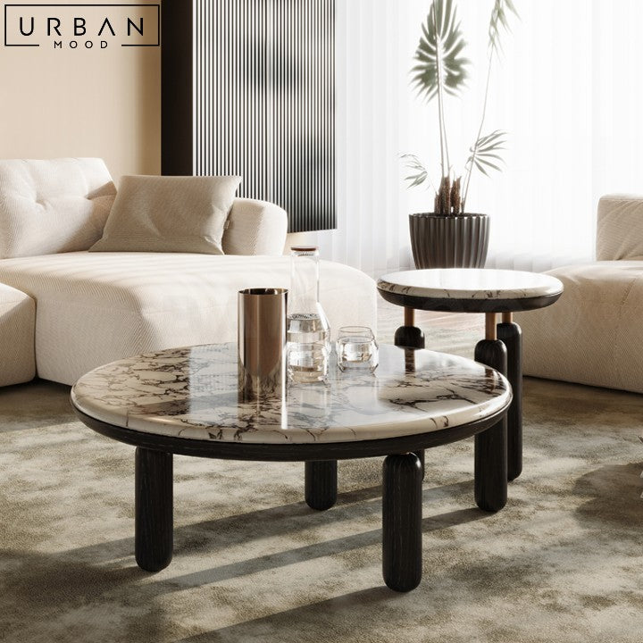 Make a majestic statement in your living room with our LEBRE marble coffee table. Featuring a round, sleek marble top surrounded by a black wooden frame and legs, this regal piece exudes luxury and sophistication. Its classic design and premium materials evoke a sense of timeless elegance, perfect for traditional or modern spaces. Pair it with the matching side table for a cohesive look that commands attention. Ideal for formal gatherings or everyday relaxation, this marble coffee table is a royal addition to modern, classic, and French-inspired home decor, inviting conversation and admiration from all who enter.